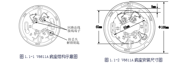 V6611A探測器底座結(jié)構(gòu)簡單、安裝方便、結(jié)構(gòu)件配合牢固;具有探測器防丟失結(jié)構(gòu)設(shè)計,每只底座均備有專用的解鎖鑰匙。底座備有長圓形安裝定位孔,可適應(yīng)于86H50型標(biāo)準(zhǔn)預(yù)埋盒及其它型號的預(yù)埋盒。