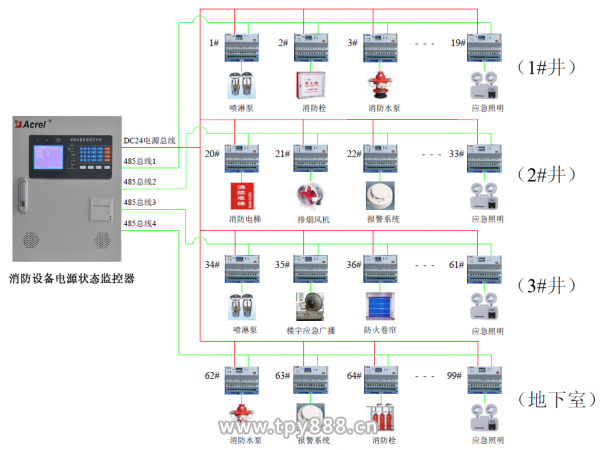 根據智能化管理要求,需要對整個商場綜合樓的消防設備供電電源的工作狀態(tài)進行全過程連續(xù)監(jiān)測、集中控制和統(tǒng)一調度。